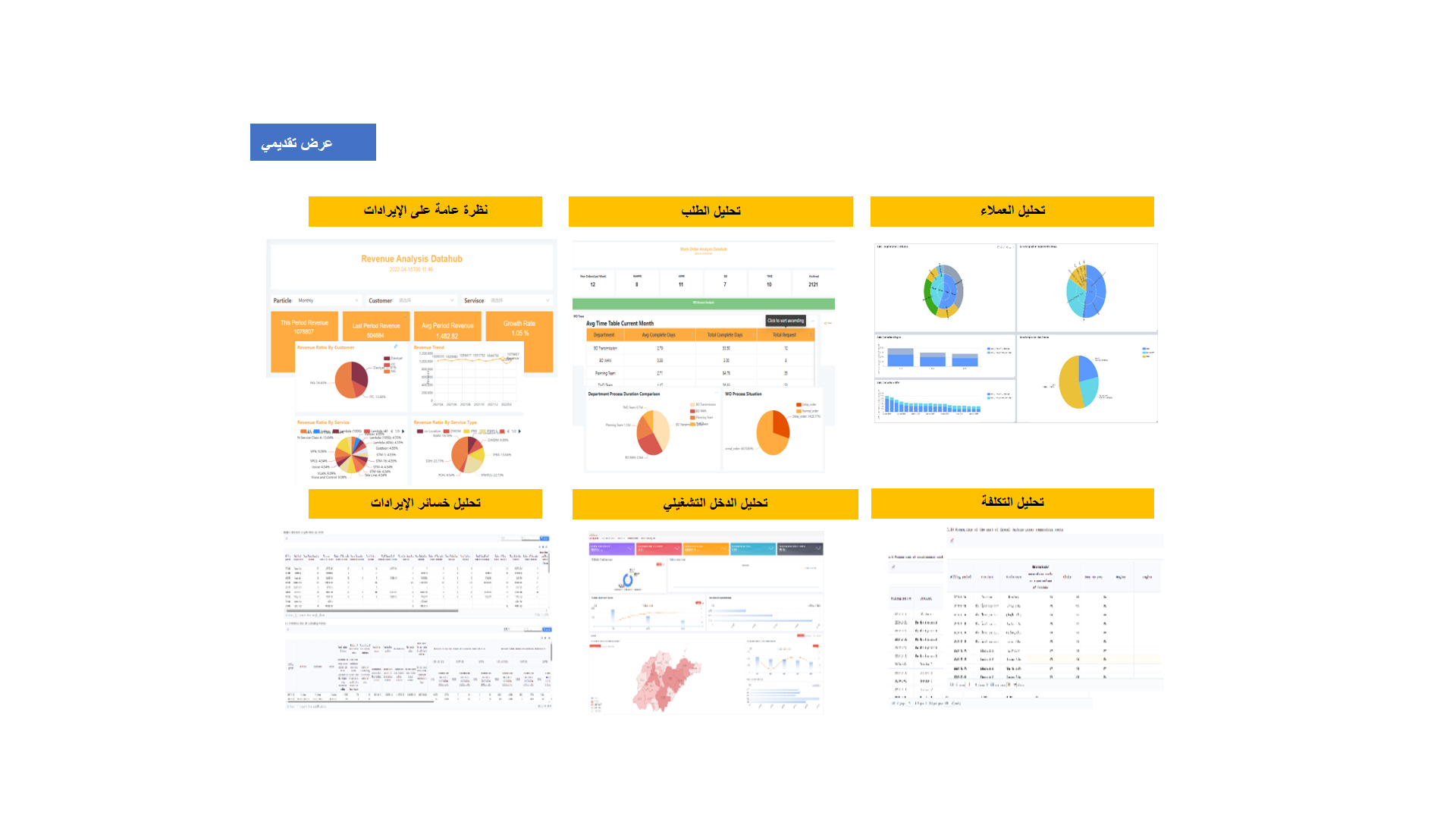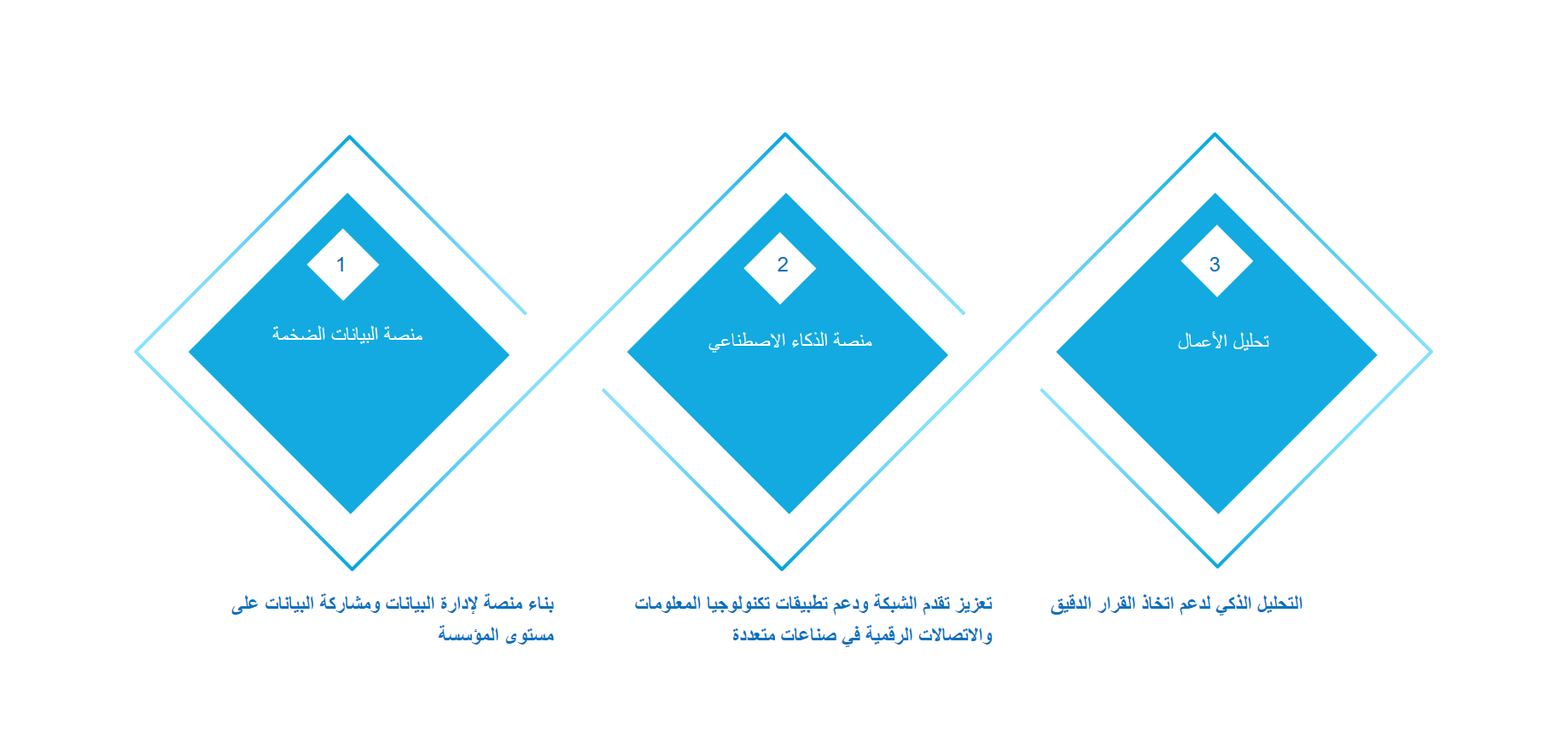 تعتبَر حلول الذكاء الاصطناعي وتحليلات البيانات الضخمة نهجاً شاملاً يعتمد على قوة الذكاء الاصطناعي وتحليلات البيانات الضخمة لتحويل البيانات الخام إلى معلومات قيّمة. يوظِّف هذا الحل خوارزميات التعلُّم الآلي المتقدمة وتقنيات النمذجة التنبؤية والتنقيب عن البيانات لاستخراج أنماط واتجاهات ذات قيمة من كميات هائلة من البيانات المنظَّمة وغير المنظَّمة. وهو يُمكِّن المؤسسات من اكتساب فهم أعمق لعملياتها التجارية وسلوكيات العملاء واتجاهات السوق وغير ذلك. من خلال الاستفادة من الذكاء الاصطناعي وتحليلات البيانات الضخمة، يمكن للمؤسسات اتخاذ قرارات أكثر دراية وتحسين عملياتها وتحسين الكفاءة وتحقيق نمو الأعمال